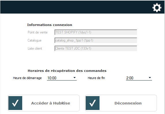 Si la connexion réussie, vous verrez apparaître les informations du comptes Hubrise :
