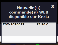 En backoffice, une pop up apparait avec la ou les nouvelles commandes :