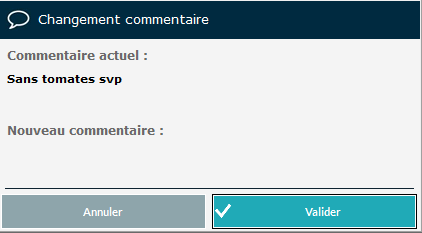 Commentaire permet d'ajouter un nota sur la commande et/ou de le mettre à jour :