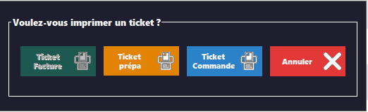 Impression permet de faire des impressions de documents manuellement (ticket prépa, commande ou facture si facturé) :