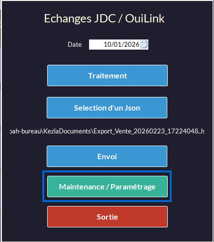 Un onglet maintenance est disponible dans la bibliothèque, il permet notamment de consulter les logs fonctionnels et de modifier le paramétrage du chemin réseau du dossier KeziaDocuments :