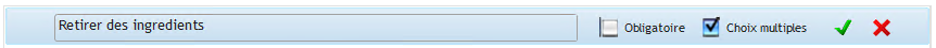 On y retrouvera la liste des personnalisations créées précédemment et associées à cet Article. La case Choix multiple ayant été cochée, le client aura le droit de sélectionner plusieurs ingrédients à retirer.
