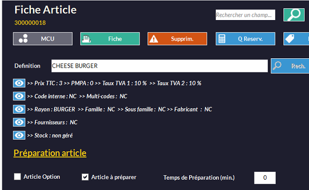 La requête exécutée, le CHEESE BURGER appartenant au Rayon BURGER aura son paramètre Article à préparer de coché.