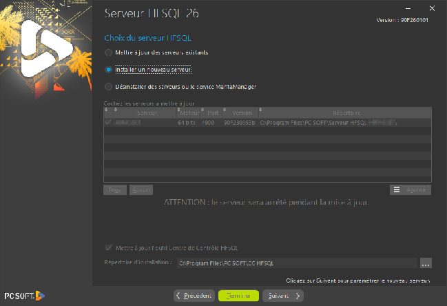 En bas, laissez par défaut le répertoire d'installation du Centre de Contrôle, c'est à dire C:\Program Files\PC SOFT\CC HFSQL.