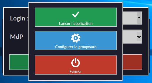 Si le mot de passe est correct, vous pouvez lancer le logiciel ou le fermer :