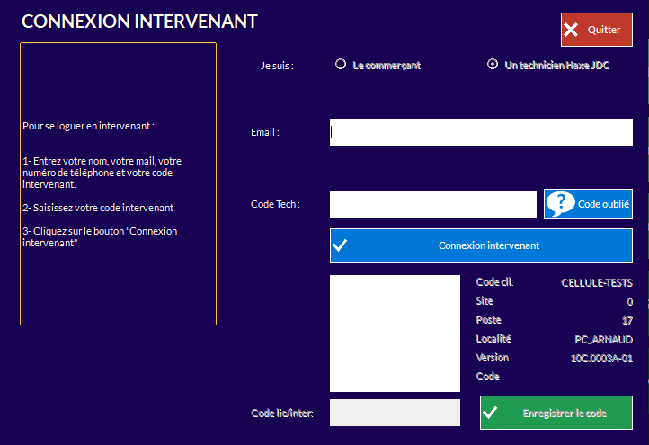 Elle sert à identifier le technicien qui intervient dans le logiciel. Une trace sera conservée dans le Journal des Événements Techniques (J.E.T.).