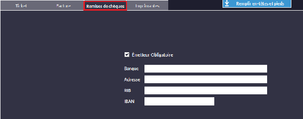 Entrez enfin les informations concernant les remises de chèques (optionnel) :