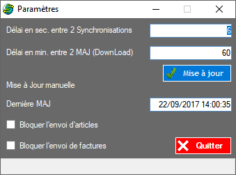 | Pour connaître cette procédure détaillée d'installation et de configuration consultez le chapitre suivant. Des informations plus complètes sur Replicator sont disponibles dans le manuel La Réplication. Dans Replicator : Activez les options souhaitées (référez-vous au manuel La Réplication). Vérifiez que le numéro du site local est le même que celui renseigné dans Kezia II ! Contrôlez les informations de la base distante. Dans le cas d'une gestion centralisée des stocks, pensez à activer la case à cocher correspondante. Une fois la réplication activée, les enregistrements seront transmis, selon leur type, toutes les 6 secondes pour les ventes et toutes les heures pour les articles et les mouvements de stock. ☞ Attention, vous n'avez pas fini : Dans Replicator, allez dans le menu Paramètres puis cliquez sur le bouton MAJ pour relier de façon cohérente les options sélectionnées de la base Kezia II du site 0 avec celles du site distant. Dans notre exemple, le logiciel téléchargera la liste des clients, des articles et des fichiers connexes.