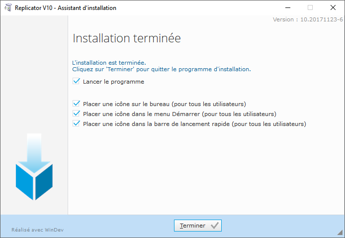 Exécutez le programme d'installation Install_Replicator_Vx.exe en tant qu'administrateur. ![]() |