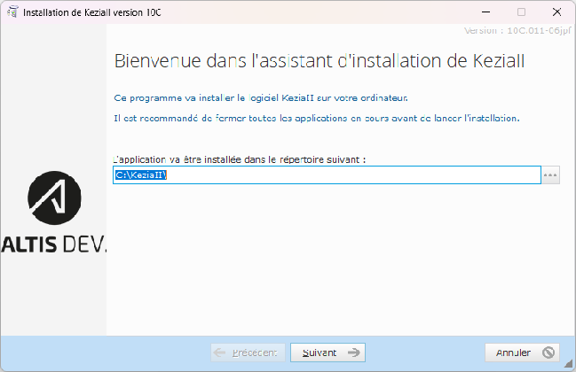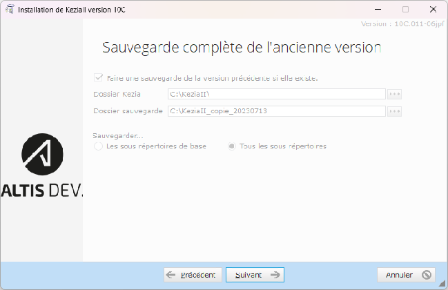 Lancer le nouvel exécutable v10 dans le dossier C:\KeziaII