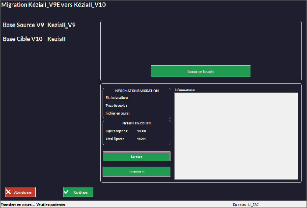 Si vous n'avez pas encore lancé la migration (vous n'avez pas appuyé sur le bouton Démarrer la Copie) :