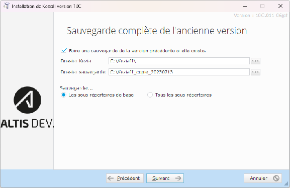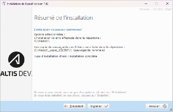 Double-cliquez sur l'exécutable d'installation Instal_KeziaII_Vxx.exe.