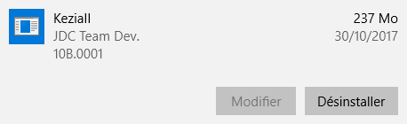 Sélectionnez Kezia II dans la liste, cliquez sur Désinstaller :