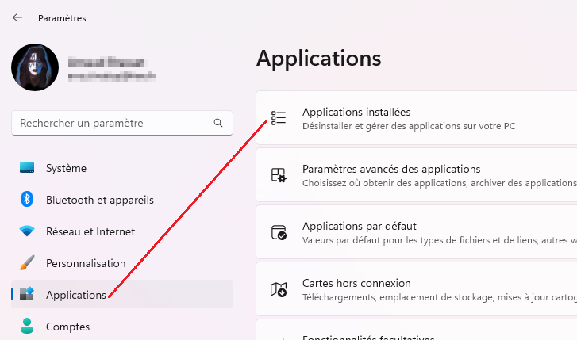 Cliquez sur Applications puis sur Applications Installées :
