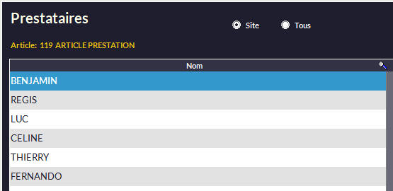 est coché par défaut : le prestataire apparaîtra dans la liste au moment de la vente :