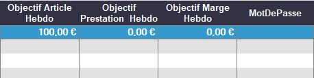 - Vous pouvez définir des objectifs hebdomadaires en Euros visant les articles, les prestations ou encore la marge.