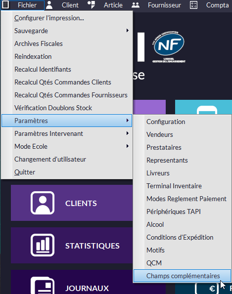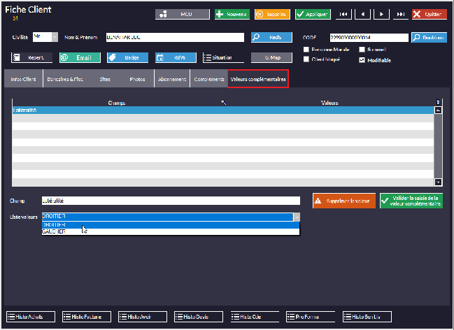 Et dans la fiche Client (onglet Valeurs Complémentaires) :