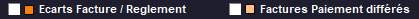 Ces cases permettent de surligner dans la liste : les écarts entre le total d'une facture et son règlement et/ou des factures à paiement différé (une facture pas encore ou pas complètement payée). Vous permet éventuellement d'expliquer une anomalie dans vos chiffres.