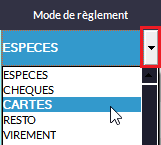 - Vous pouvez changer le mode de règlement avec le menu déroulant :