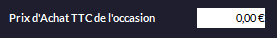 Si nécessaire, cochez la case Occasion : le calcul de la TVA lors de vente en sera modifié. Vous devrez donc renseigner le prix d'achat TTC dans le champ prévu à cet effet et recalculer le PMPA de l'article à l'aide du bouton