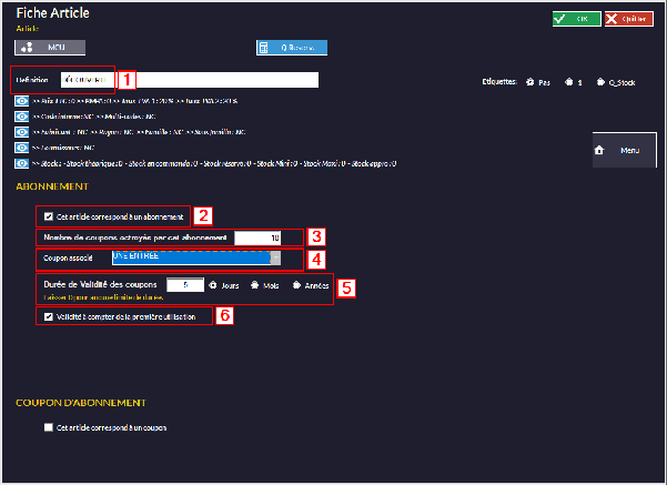 Cliquez sur Abonnement Coupon et cochez Cet article correspond à un coupon en bas de la fenêtre.