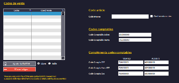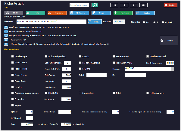Prix Négatif : Permet par exemple de faire un remise montant plus rapidement en caisse (voir plus bas rubrique Prix de Vente). Attention, si cette case est cochée, le prix de vente en caisse restera négatif !