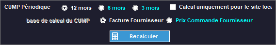 L'option CUMP (Coût Unitaire Moyen Pondéré) calcule le prix d'achat sur la base d'une moyenne périodique. Allez dans le menu Fichier -> Paramètres -> Configuration F9 -> Article pour définir les paramètres souhaités. Vous pourrez ensuite utiliser le PMPA ou le CUMP pour valoriser votre inventaire.