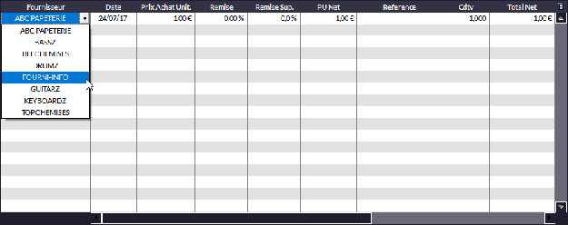 Sur le champ Frais, vous pouvez entrer une somme (exprimée en montant ou pourcentage - on parle alors de Type de Frais) à additionner au prix d'achat. Kezia II utilisera cette information pour calculer le Prix de Revient.