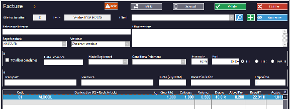 Si vous commercialisez de l'alcool, vous aurez besoin dans certains cas de calculer les taxes de ces produits et établir le document d'accompagnement obligatoire lors de la facturation de vos clients. Le module alcool de Kezia II vous aide à le faire.