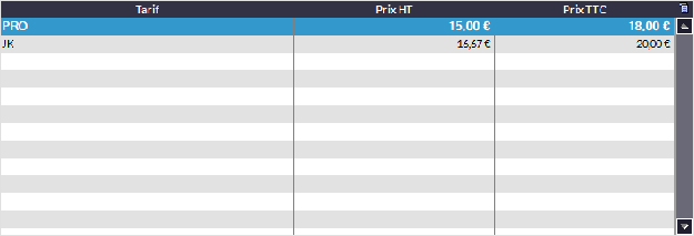 Définissez sur cette fenêtre les informations concernant le tarif de votre article.
