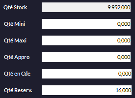 Qté Maxi est la quantité maximale à commander chez votre fournisseur. Dans une commande fournisseur, la quantité sera bleutée si vous commandez plus.