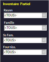Sélectionnez un rayon, famille, fournisseur... dans l'encart Inventaire partiel :
