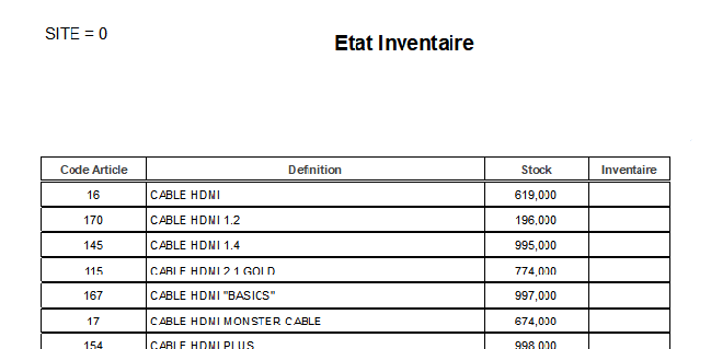 Notez que vous pouvez préparer un listing de vos articles dans la fenêtre Article -> Consultation Stock -> Local :