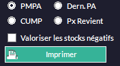Vous pouvez choisir si vous affichez sa valeur en PMPA (Prix Moyen Pondéré d'Achat), CUMP (Coût Unitaire Moyen Pondéré), Dernier Prix d'Achat ou le Prix de Revient.