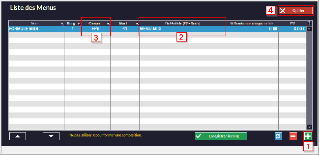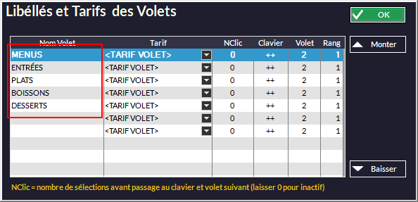 Vous pouvez créer des libellé de tickets (par exemple : "1 repas", "Repas complet", "Formule Midi"...) avec le bouton