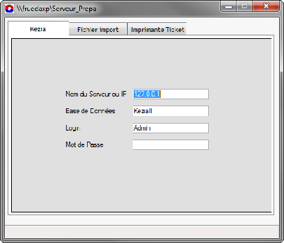 Entrez les paramètres du serveur Kezia II. Dans notre cas, l'imprimante est connectée sur le poste serveur.