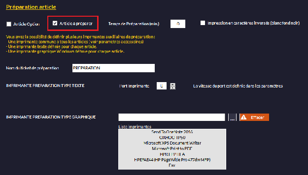 pour activer l'impression du ticket de préparation de l'article. -