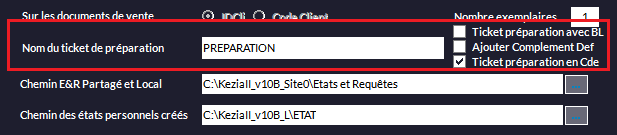 Cochez la case Ticket Commande/Préparation et entrez l'adresse du répertoire partagé. Laissez les autres options par défaut.