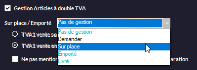 vous permet de définir l'article en cours en tant qu'option d'un autre article (utile pour donner des précisions sur la préparation d'un plat ou la cuisson d'une viande). Consultez le chapitre Gestion des Articles - Options Avancées - Options pour plus d'informations. -