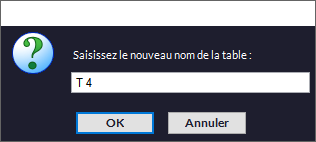 soit activée.- Vous pouvez nommer une table au lieu du numéro attribué par défaut. Faites un clic droit sur la table en question et entrez le nom dans la fenêtre qui va s'ouvrir :