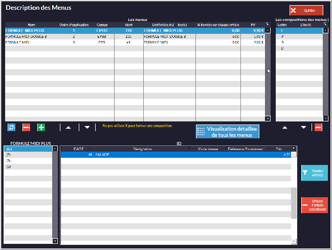 - Remettez toujours en attente les tables après chaque modification/ajout d'articles.