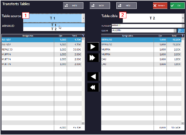 Il est possible de transférer le contenu d'une table vers une autre. Pour ce faire, cliquez sur
