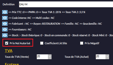 Certaines professions, notamment la restauration, ont besoin d'éditer un ticket dit de Préparation sur une seconde imprimante (par exemple en cuisine). Pour configurer cette option, ouvrez la fiche de l'article concerné et cliquez sur l'onglet Préparation.