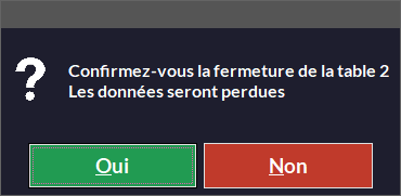 Confirmez pour clôturer la table (annule la saisie et ferme la table sans enregistrer les données).