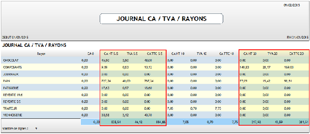 Vous retrouverez sur ce journal votre chiffre d'affaires de la période, regroupé par Rayon et TVA.