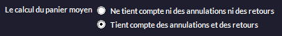 Le calcul du panier moyen tiendra compte ou non des annulations et des retours, selon vos préférences (v10C.0004H) |