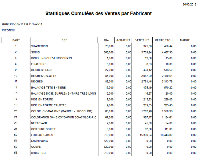 Cet outil permet d'établir un rapport de ventes triées par fabricant.