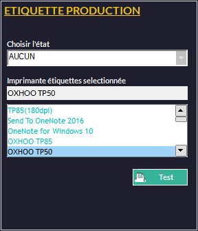 Dans le choix de l'état, n'est proposé pour l'instant que Étiquette Standard (le texte n'excédera pas 80mmx30mm) qui fonctionne avec des imprimantes Zebra. D'autres formats seront ajoutés dans de futures versions de Kezia II.