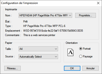- L'imprimante doit avoir été préalablement installée dans Windows avec les pilotes du constructeur.