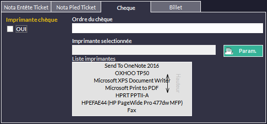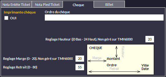 pour activer l'utilisation d'une imprimante chèque. Entrez ensuite :